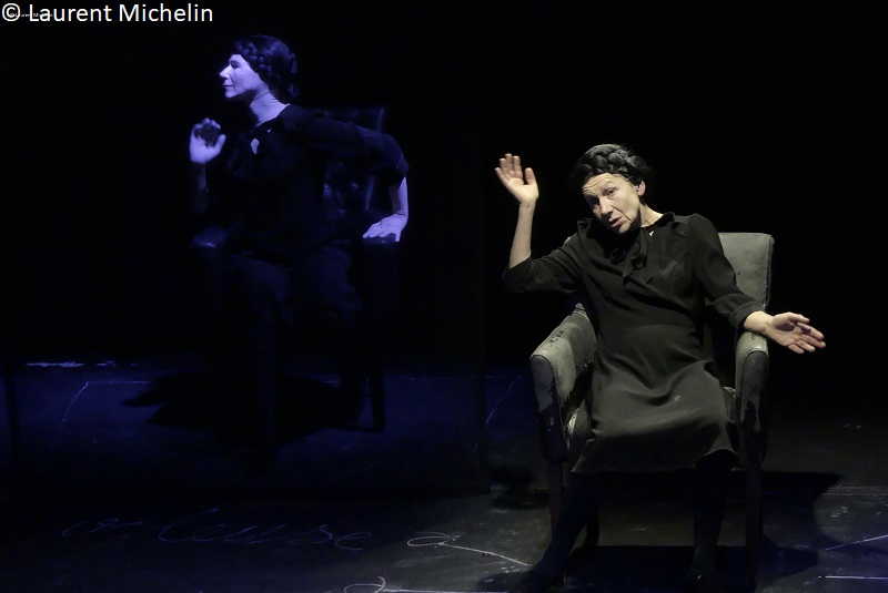 Un cube noir. L’une des six faces étant le quatrième mur totalement étanche. Normal, un délire ne s’adresse à personne, à aucun regard extérieur, il est un déroulé verbal interminable, un monologue à la recherche d’un soi fuyant. L’avant-scène est libre de tout objet. Le sol est une page noire comme la page blanche d’un écrivain en panne, support d’une inscription à venir de l’événement déclencheur… À l’arrière-plan, deux fauteuils face à la salle, dissemblables et en quinconce avec un tulle gris tombant devant le plus reculé. Dans le spectacle de Laurent Michelin, tout commence par la scénographie qui en est le principe actif puisqu’elle dessine le dispositif d’une activation de la parole un peu folle, folle de vérité, vérité à fleur de peau. Le metteur en scène a trouvé la formule alchimique pourmettre en scène un délire. « Je suis un oiseau de nuit » est une métaphore que l’on peut trouver belle, c’est surtout l’auto-affirmation la plus assumée d’Ida, personnage éponyme du roman insolite d’Hélène Bessette, Ida ou le délire (1973, éd. Le nouvel Attila). Laurent Michelin qui n’a pas craint d’adapter au théâtre cet objet littéraire hors norme, a eu raison d’oser cette aventure car le résultat est surprenant et superbement réussi. On peut dire qu’Hélène Bessette est à la littérature ce que fut Séraphine de Senlis à la peinture. La plupart du temps la littérature brute reste confidentielle ou dans les archives des hôpitaux psychiatriques. Les textes de cette écrivaine qui ne fut heureusement jamais internée ont été publiés… et oubliés. Son écriture est pourtant à l’origine du « roman poétique ». Découverte par Michel Leiris, éditée par Raymond Queneau, encensée par Nathalie Sarraute, Marguerite Duras ou George Dubuffet, Hélène Bessette (1918-2000) publia peu et vendit encore moins. Tombée en disgrâce éditoriale après Ida… et démissionnaire de l’Éducation Nationale, elle subsista pauvrement grâce à divers petits boulots dont celui de femme de ménage, pour finir sa vie dans l’anonymat et la folie. Ce n’est que dans les années 2010 qu’elle sera redécouverte.