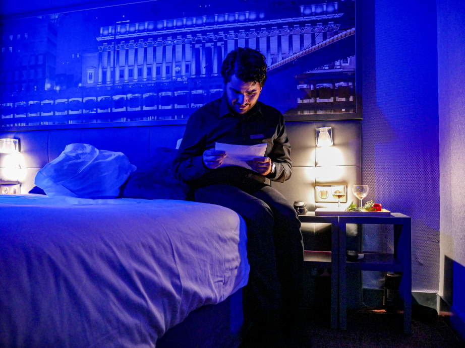 À l’expérience unique et sans doute très formatrice des comédiens, s’ajoute celle immersive du public. Un même corps humain peut-il vivre une grande variété de situations et d’affects en un temps relativement court? Un spectateur peut-il être au plus près du comédien comme s’il était au pied de son lit ? Expérience plus que concluante : vous vivez du théâtre augmenté ! À moins que ce ne soit de l’hôtel augmenté car vous avez tous déjà séjourné à l’hôtel en espérant secrètement qu’il se passât quelque chose pour vous ou dans la chambre d’à côté, quelque chose de plaisant ou de terrible pourvu que ce soit insolite et dans l’anonymat de l’hôtel !